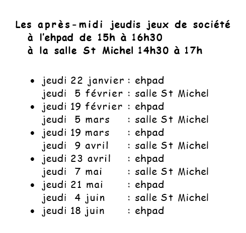 APRES-MIDI RECREATIFS : des après midi jeux proposés par la conférence St Joseph Ar Mor